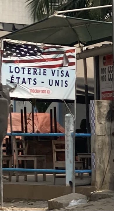 A sign advertising the visa lottery in Benin.